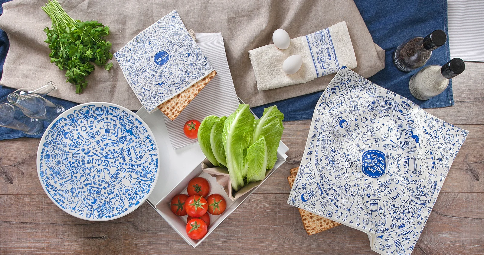 Barbara Shaw Pesach in a Box Gift Set - Matzah Tin Box, Trivet & Towel - $50
